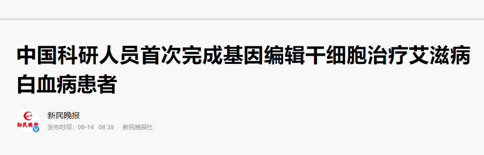 中國科學(xué)家完成首例基因編輯干細(xì)胞治療艾滋病和白血病患者