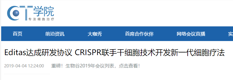 Editas達(dá)成研發(fā)協(xié)議 CRISPR聯(lián)手干細(xì)胞技術(shù)開發(fā)新一代細(xì)胞…