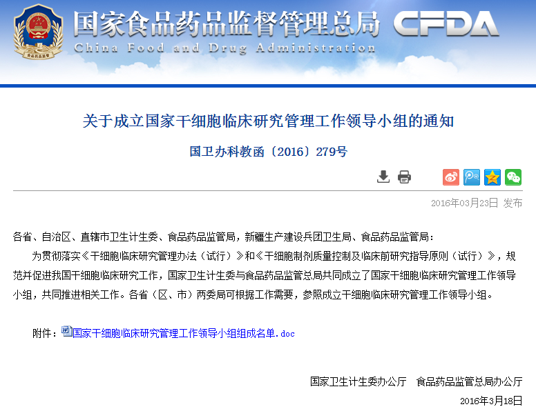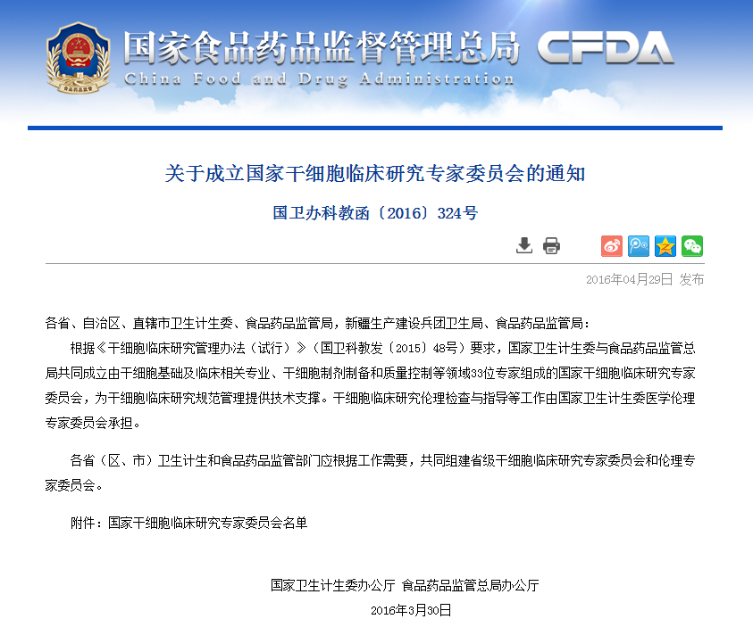 各省、自治區(qū)、直轄市衛(wèi)生計生委、食品藥品監(jiān)管局,新疆生產(chǎn)建設(shè)兵團(tuán)衛(wèi)生局、食品藥品監(jiān)管局:為貫徹落實《干細(xì)胞臨床研究管理辦法(試行)》和《干細(xì)胞制劑質(zhì)量控制及臨床前研究指導(dǎo)原則(試行)》,規(guī)范并促進(jìn)我國干細(xì)胞臨床研究工作,國家衛(wèi)生計生委與食品…