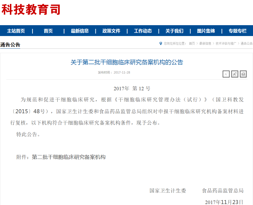 截止至2017年11月28日,我國一共有102家醫(yī)院(干細(xì)胞臨床研究機(jī)構(gòu))通過備案。附件: